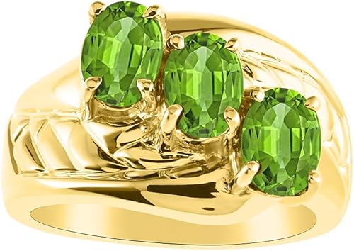 3 Stone Peridot Ring Set In 14k Yellow Gold August Birthstone