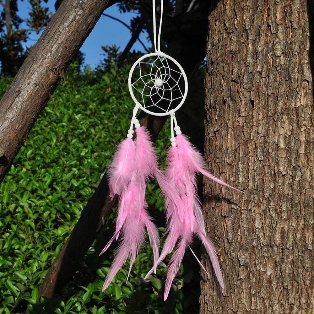 Car Pendant Pink Feather Dream Catcher Wind Chimes Hanging Trim